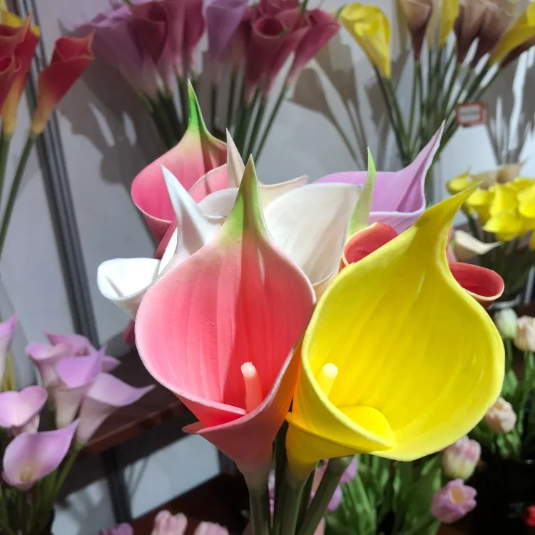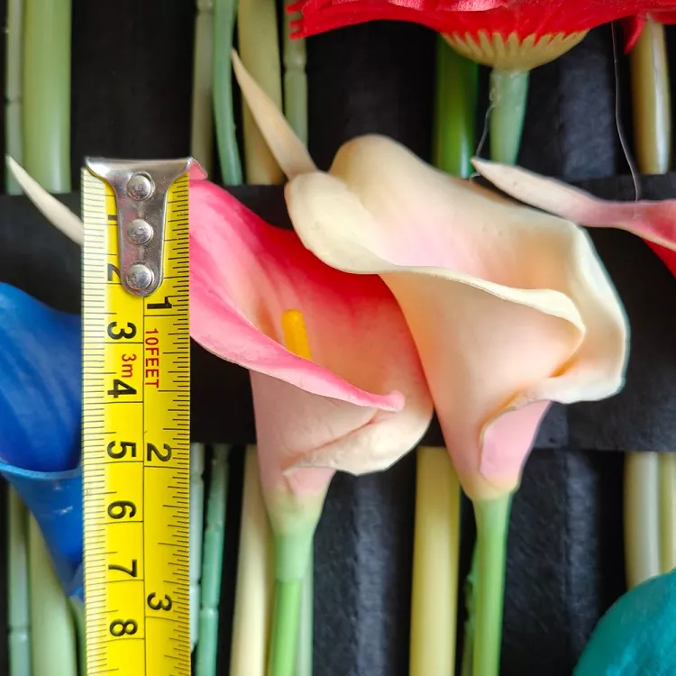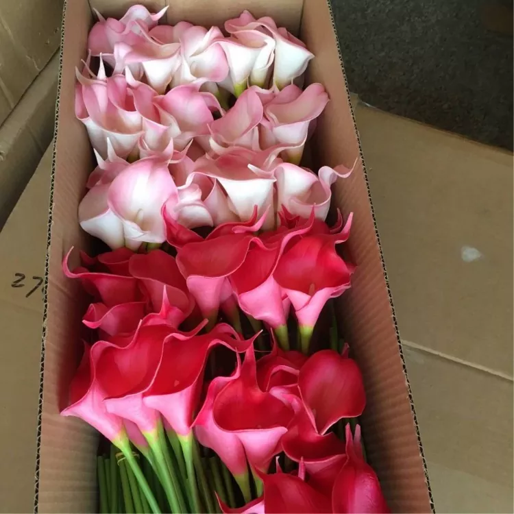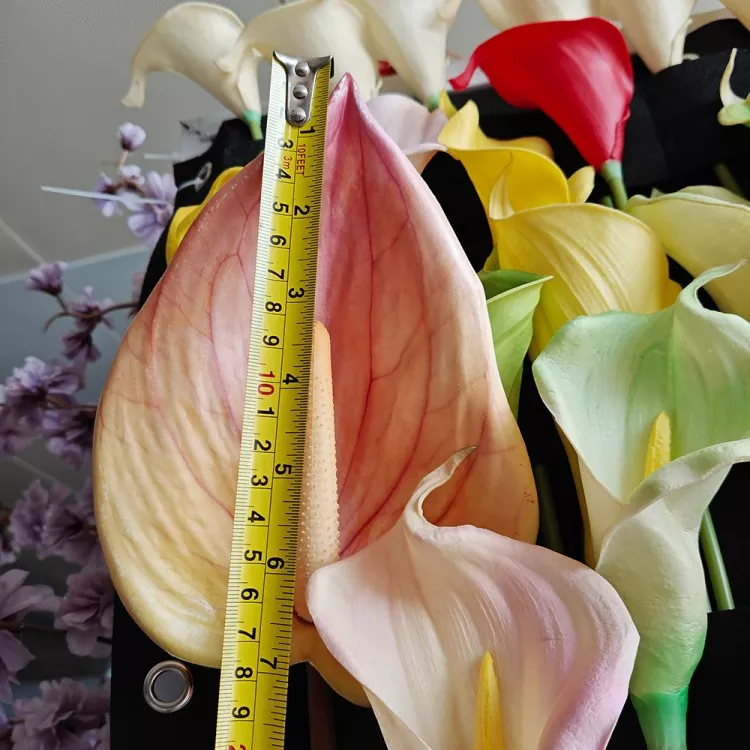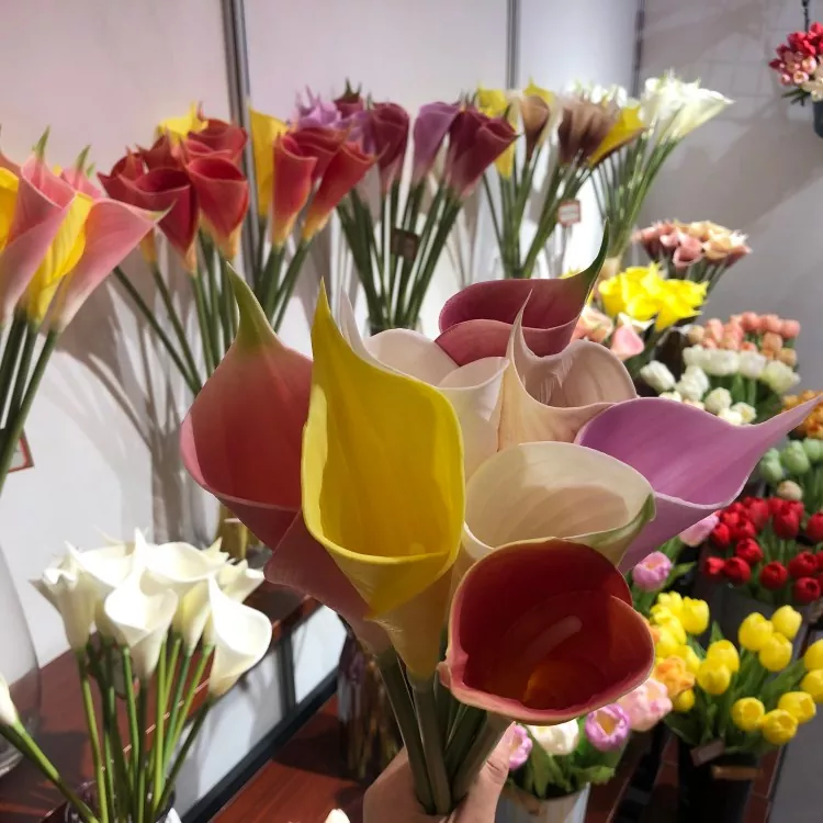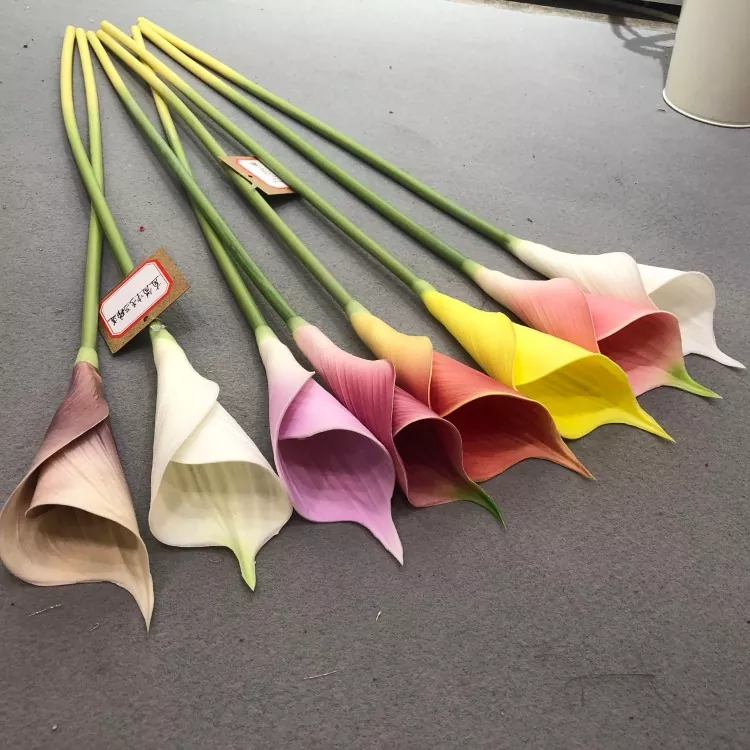 Odporúča sa zvoliť 5 ~ 9 PU Artificial Calla Lily, ktorú je možné porovnávať s bielymi, krémovými, ružovými alebo žltými, aby sa vytvoril prirodzený a mäkký vizuálny zmysel.