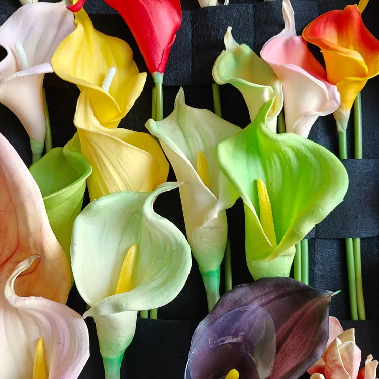 V spoločnosti Ouli® ponúkame rôzne umelé Calla Lily v rôznych farbách a veľkostiach, ktoré podporujú prispôsobené balenie, korektné a globálne dodávky, vhodné pre svadobných plánovačov, maloobchodníkov alebo kupujúcich kvetinách pre domácich majstrov.