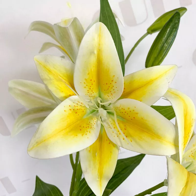 Tento umelý kvetina Tiger Lily Flowers Artificial Clower sa skladá zo 4 kvitnúcich ľalie a 2 kvetinových pukov, s výškou 66 cm a priemerom kvetu asi 15 cm a prirodzeným a trojrozmerným vzhľadom. Povrch okvetných lístkov je matná textúra, pohodlná na dotyk a mierne mäkká a tvrdá. K dispozícii je 16 farieb, ktoré je možné vyrovnať s rôznymi dekoratívnymi štýlmi, ktoré sú vhodné pre modernú domácu dekoráciu, svadobnú stenu alebo komerčný priestor na priestor.